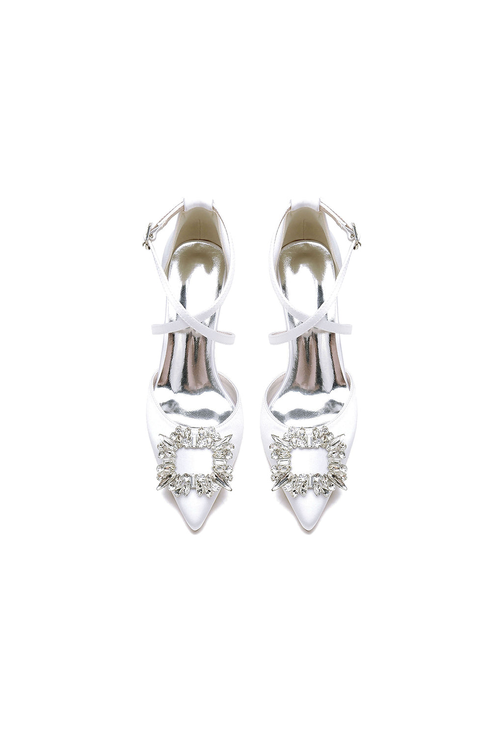 White Satin Pump with Crystal-Embellished Cross-Strap