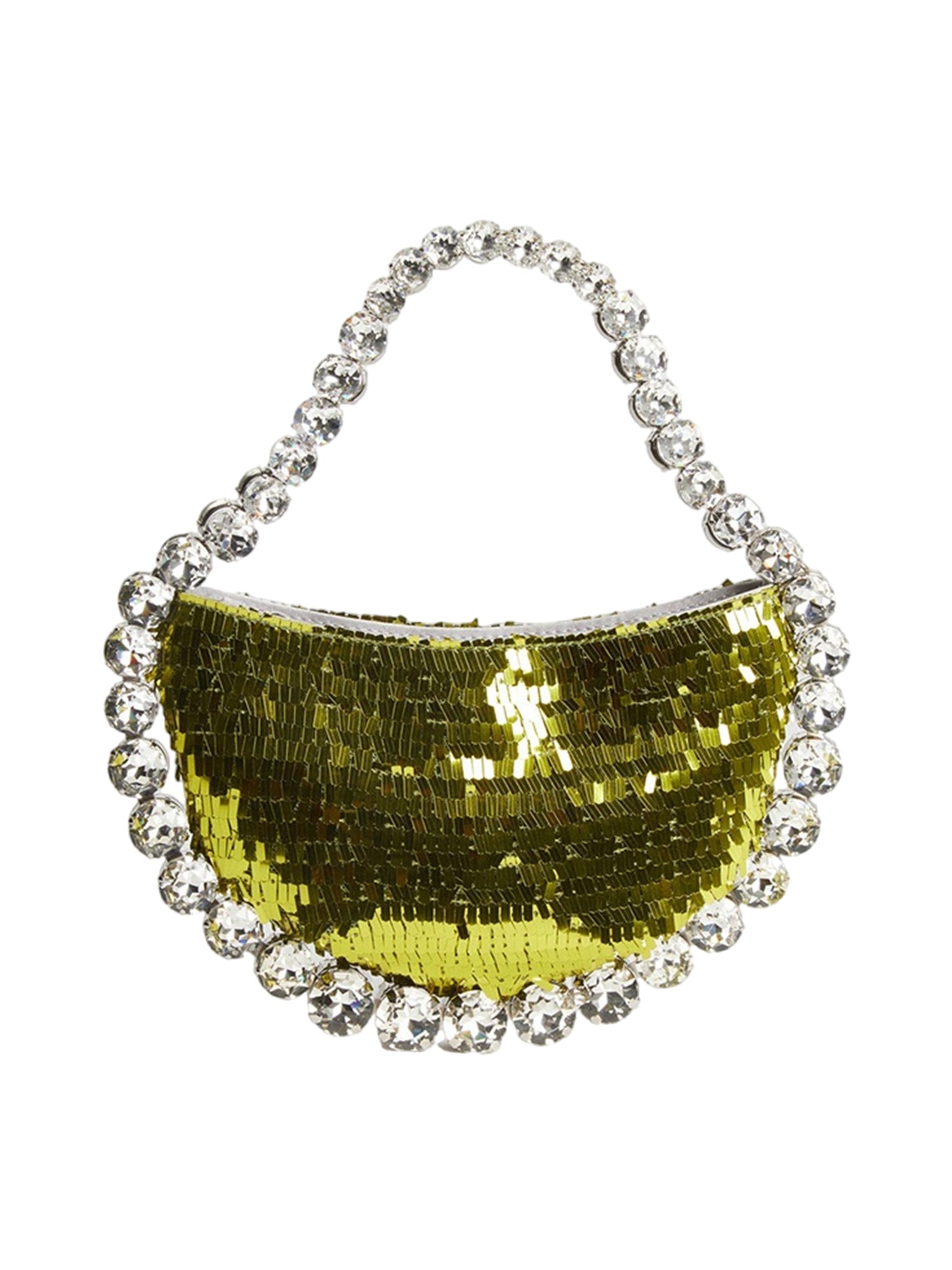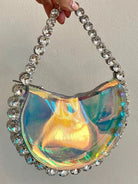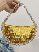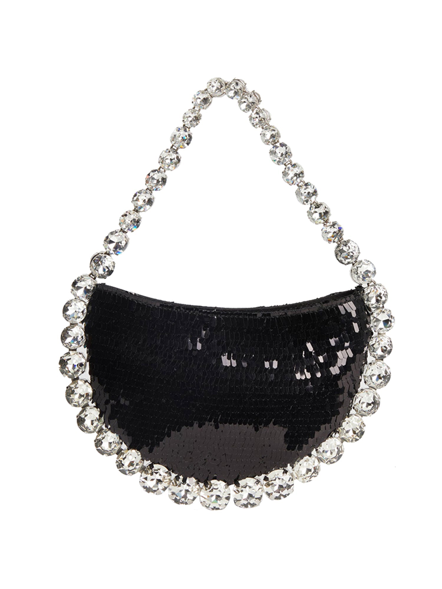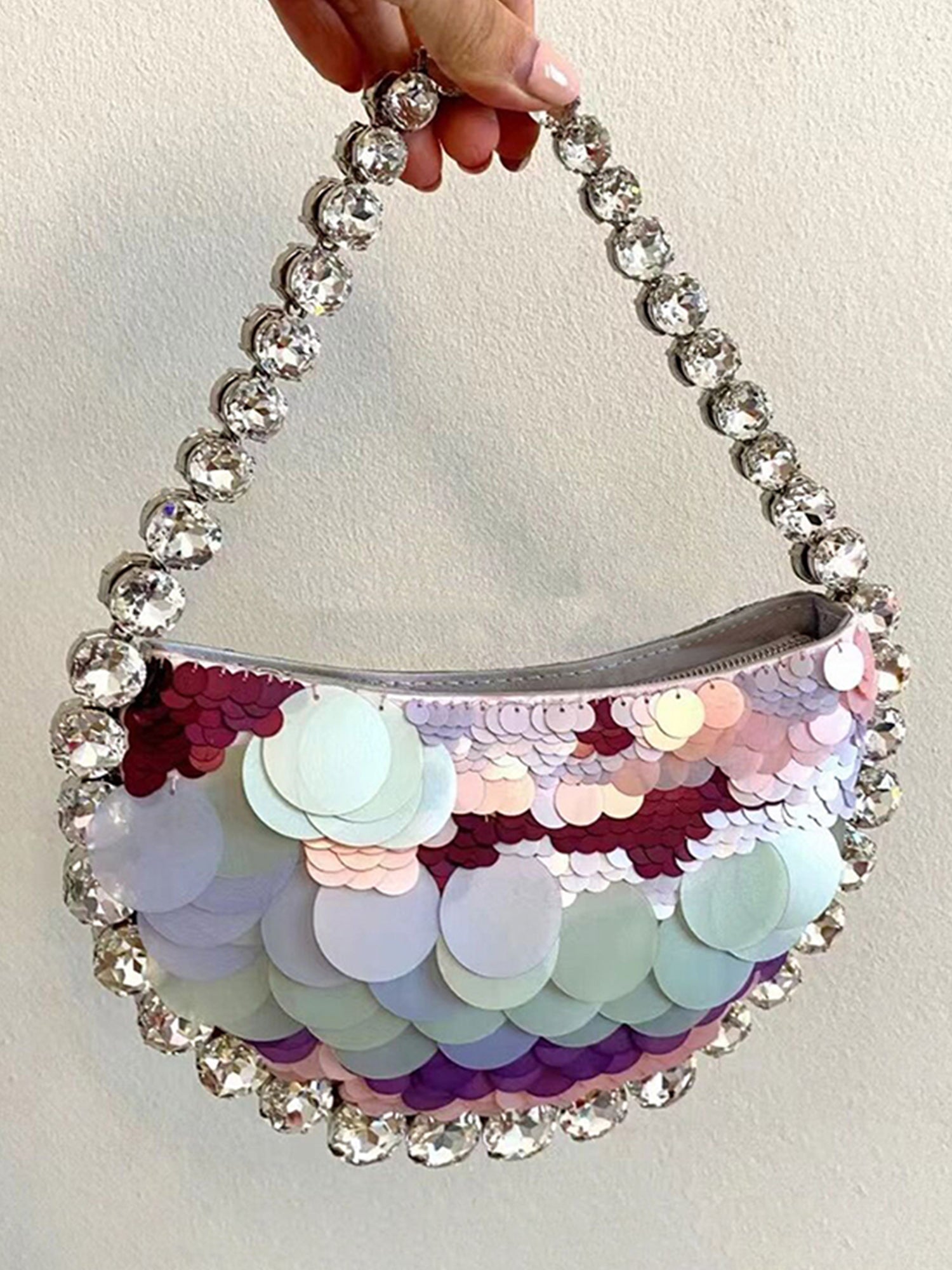 Add some sparkle to your daily style with this dazzling rhinestone shoulder bag. Available in black, iridescent silver, sparkling black, sparkling gold, and multi-colored sequins, this bag is perfect for the streetwear fashionista. The bag is made of high-quality PU material and features an oval shape with a zippered closure and a convenient inner pocket. The bag is medium-hard and has a spacious interior with a polyester lining. The chain strap adds a touch of elegance to the bag, making it perfect for both casual and formal occasions.