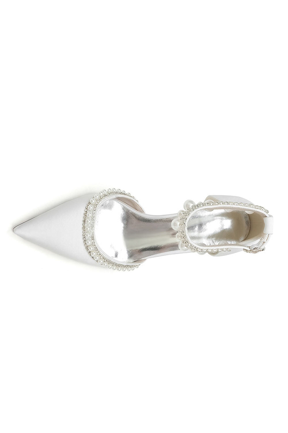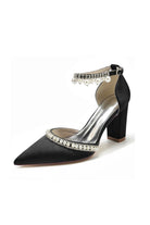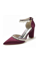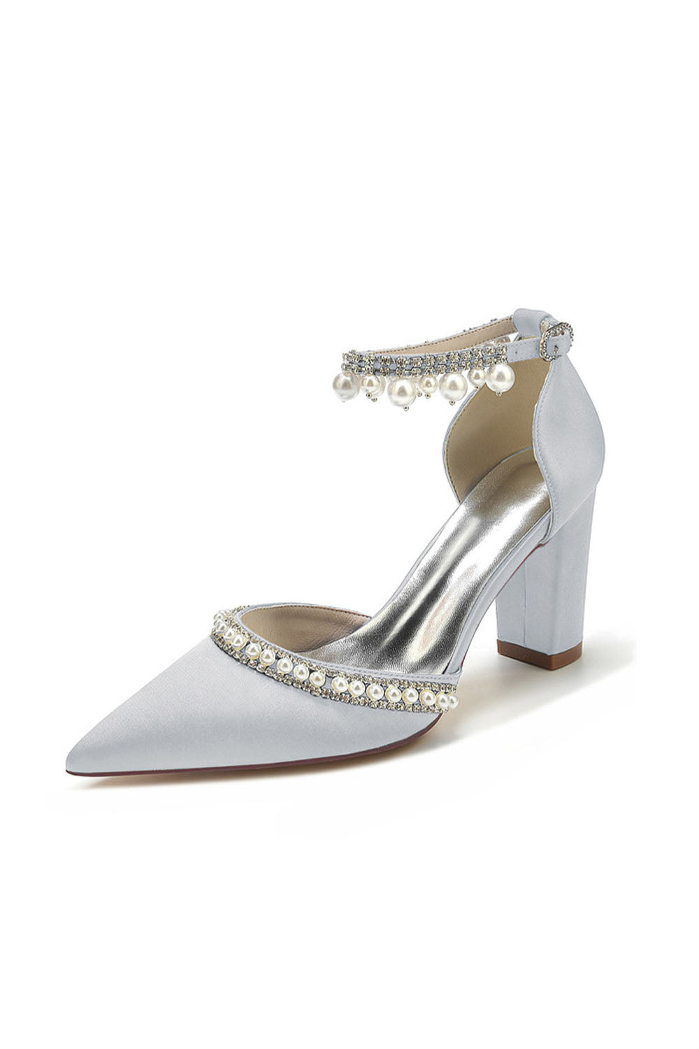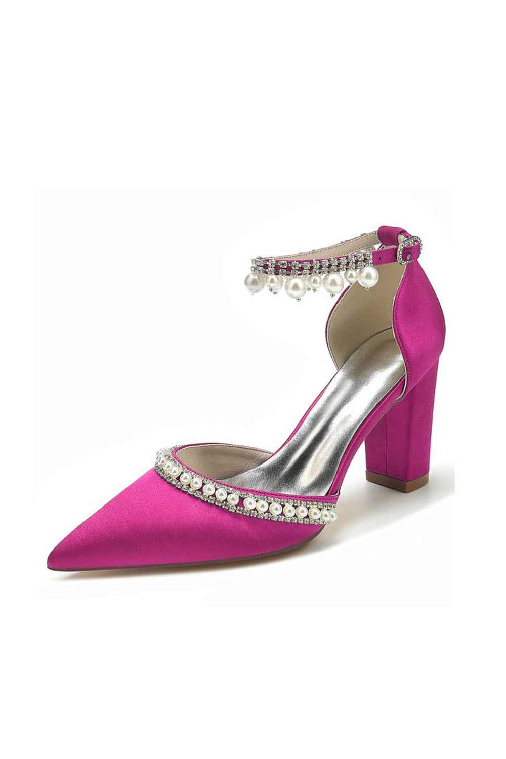 Women's Wedding Shoes Satin Block Heel Pearl Rhinestone Tassel Wedding Shoes