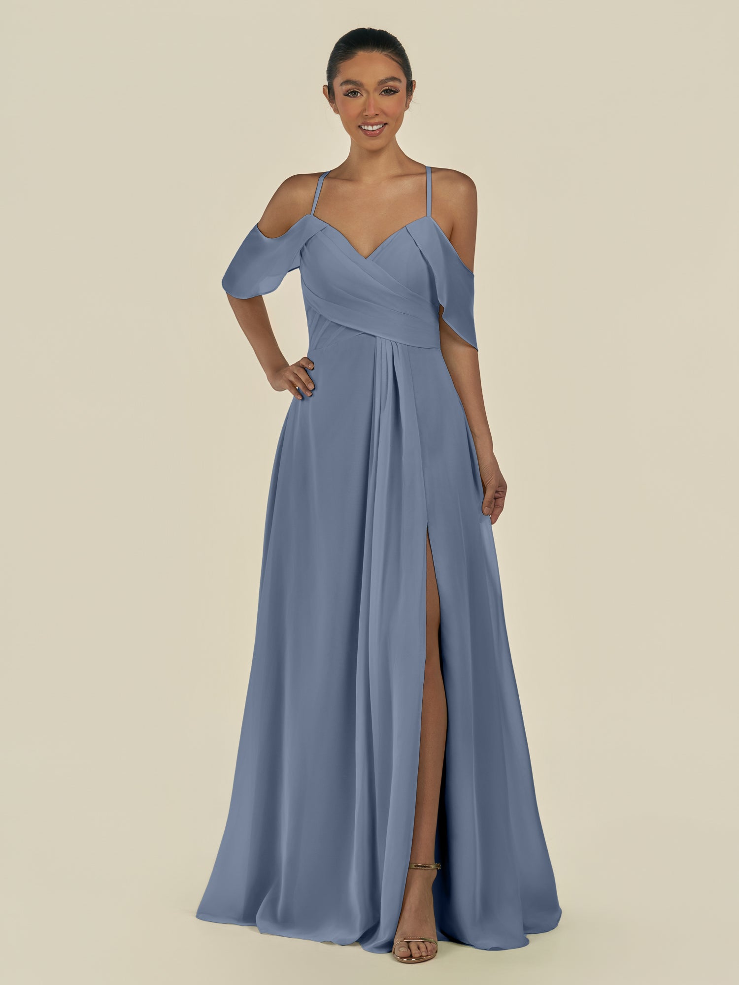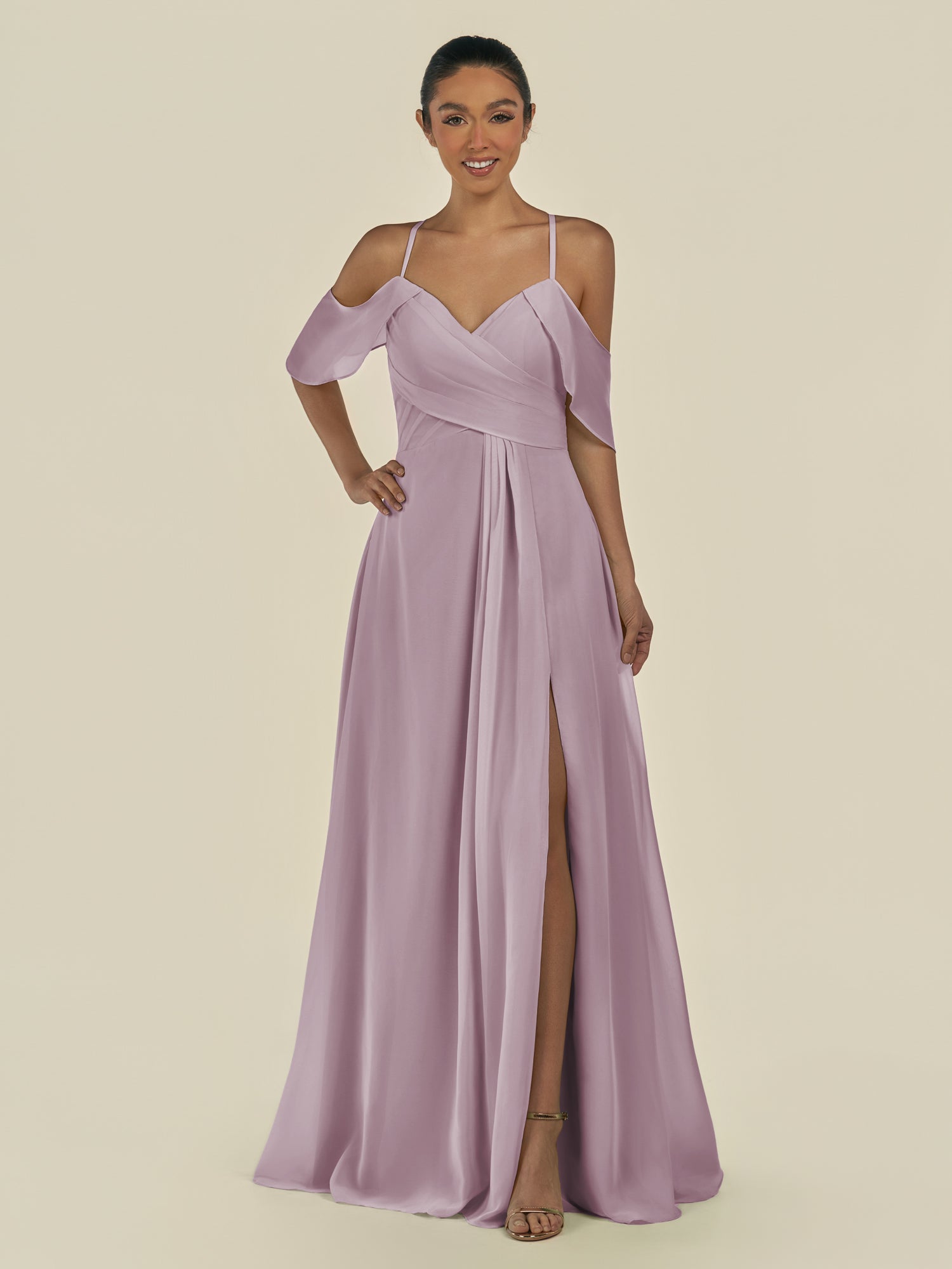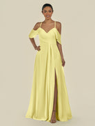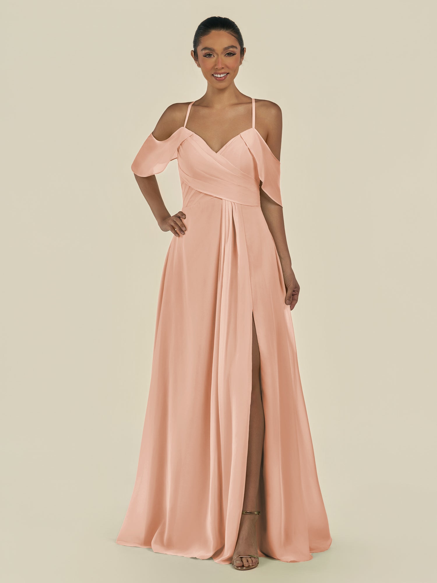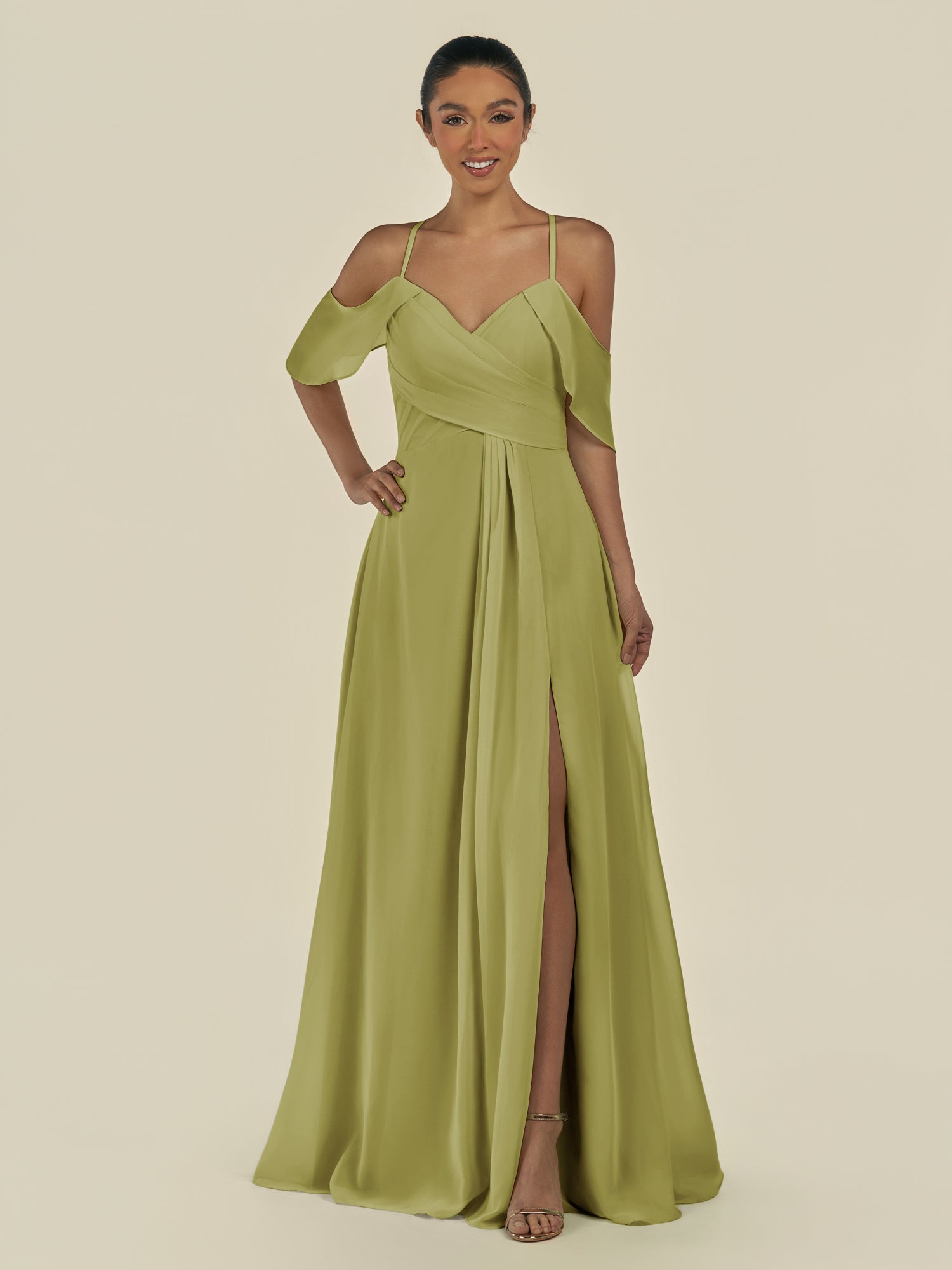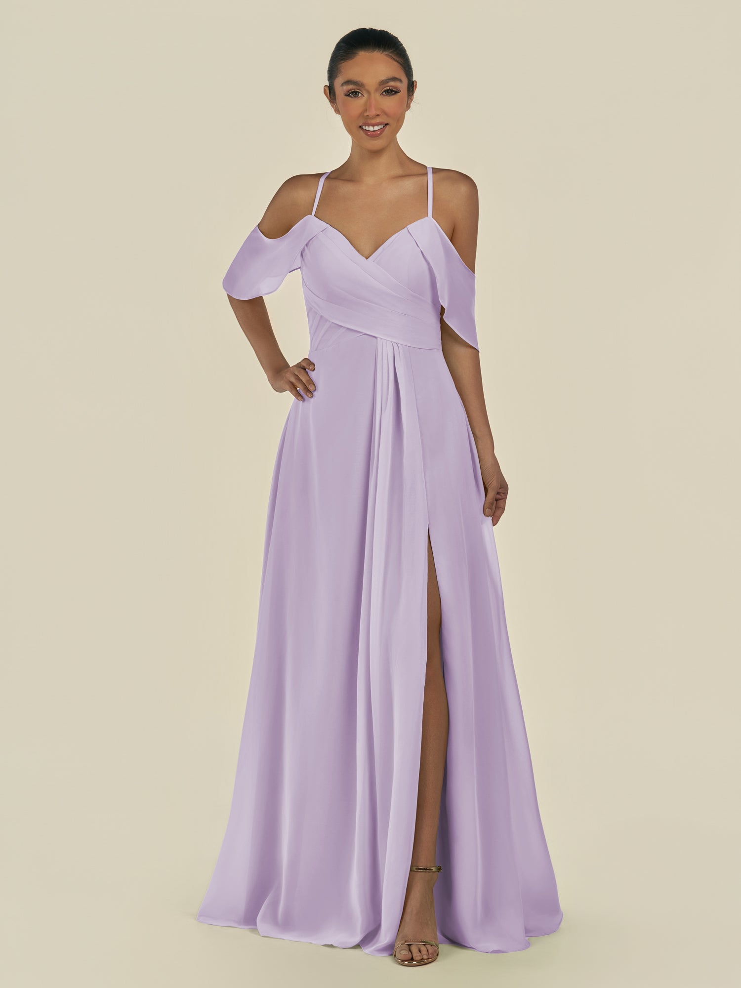 Yeoh | A Line Chiffon Off the Shoulder Pleated Long Bridesmaid Dress with Slit