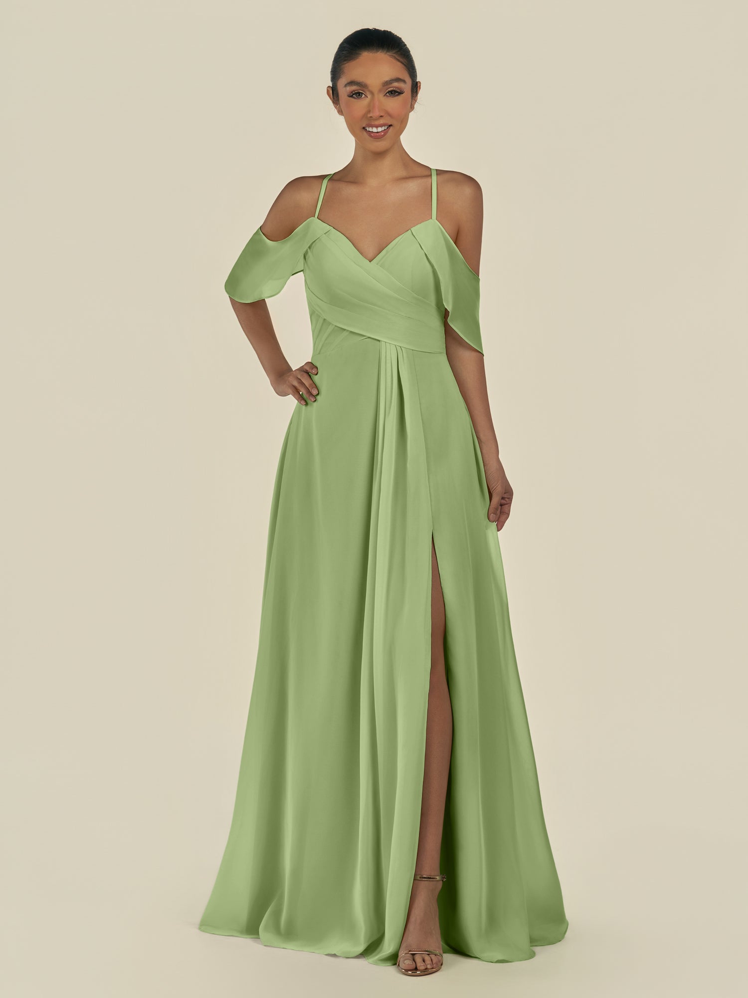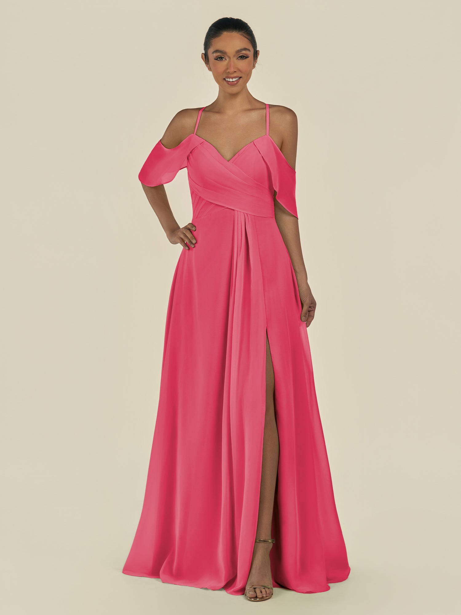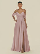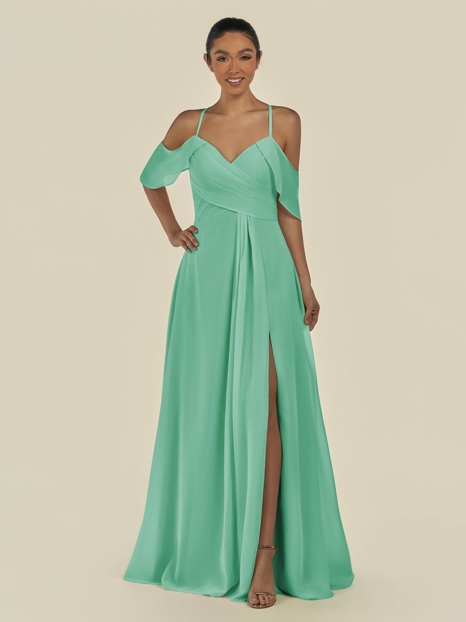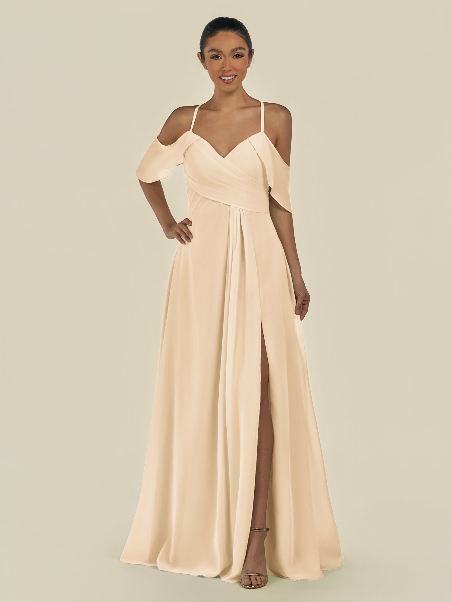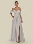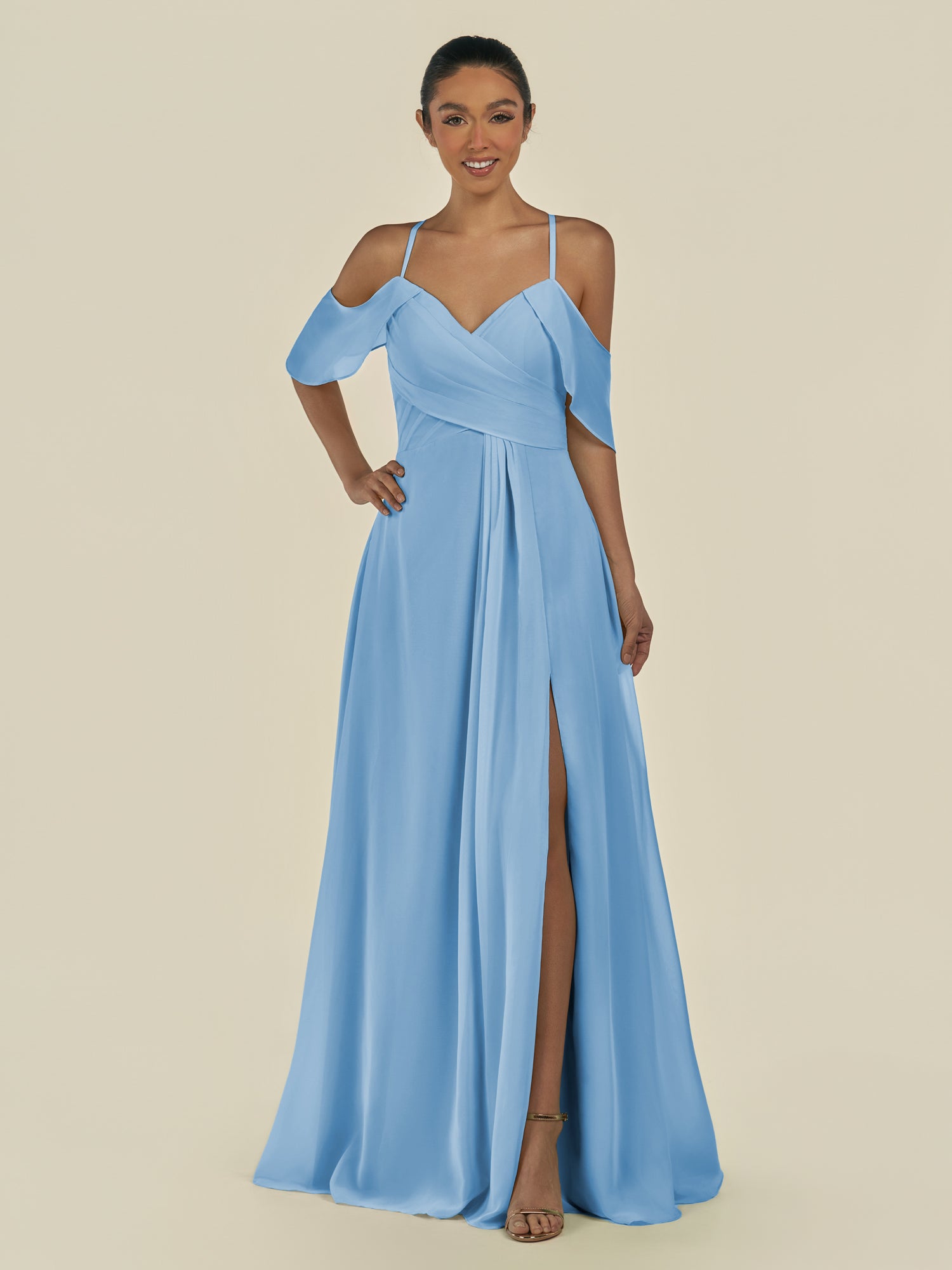 Yeoh | A Line Chiffon Off the Shoulder Pleated Long Bridesmaid Dress with Slit