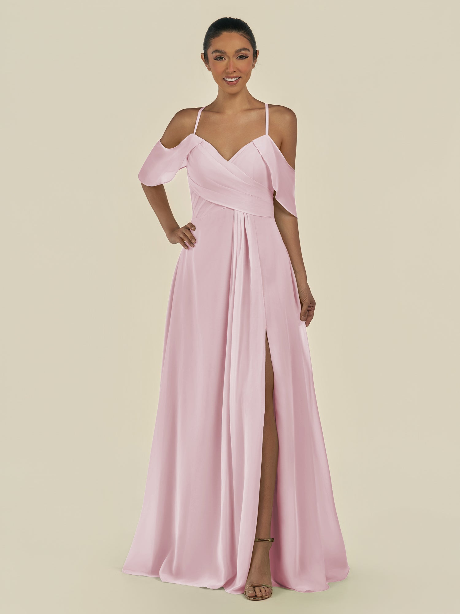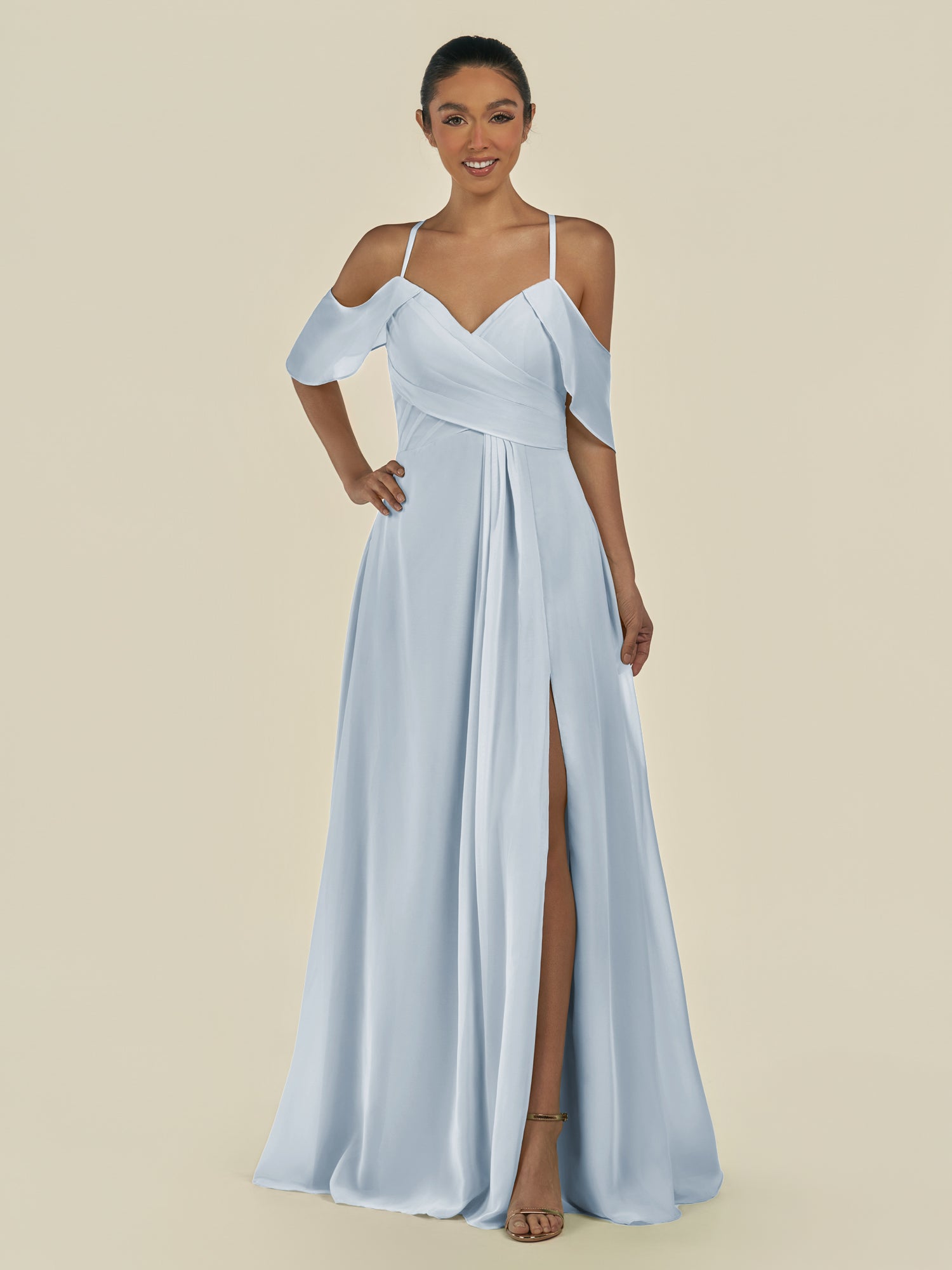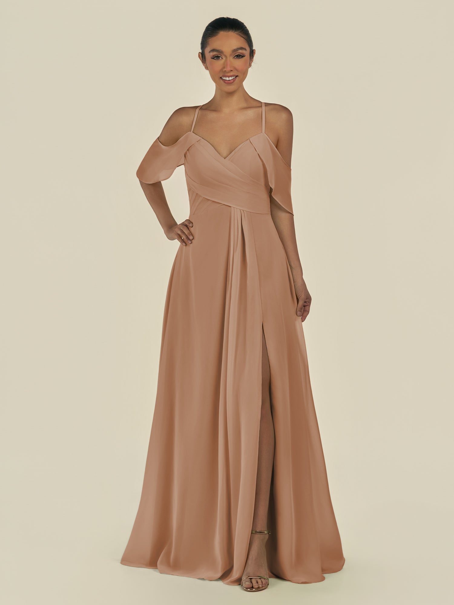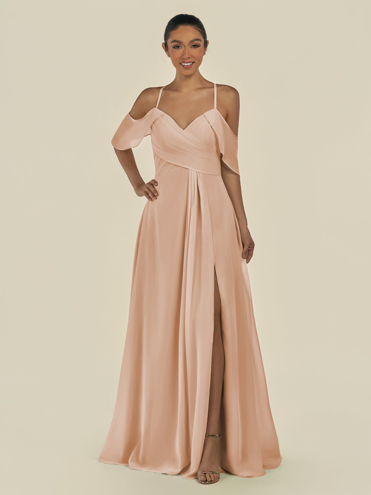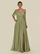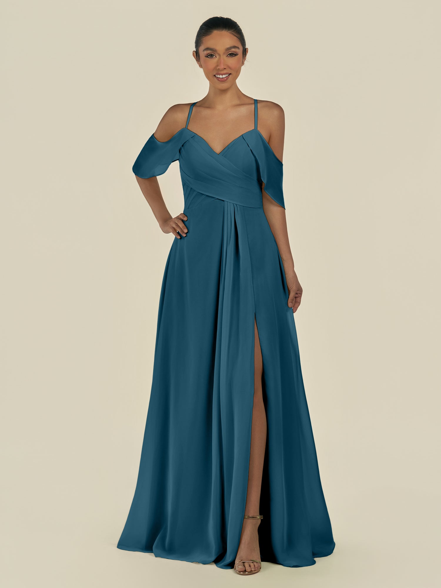 Yeoh | A Line Chiffon Off the Shoulder Pleated Long Bridesmaid Dress with Slit