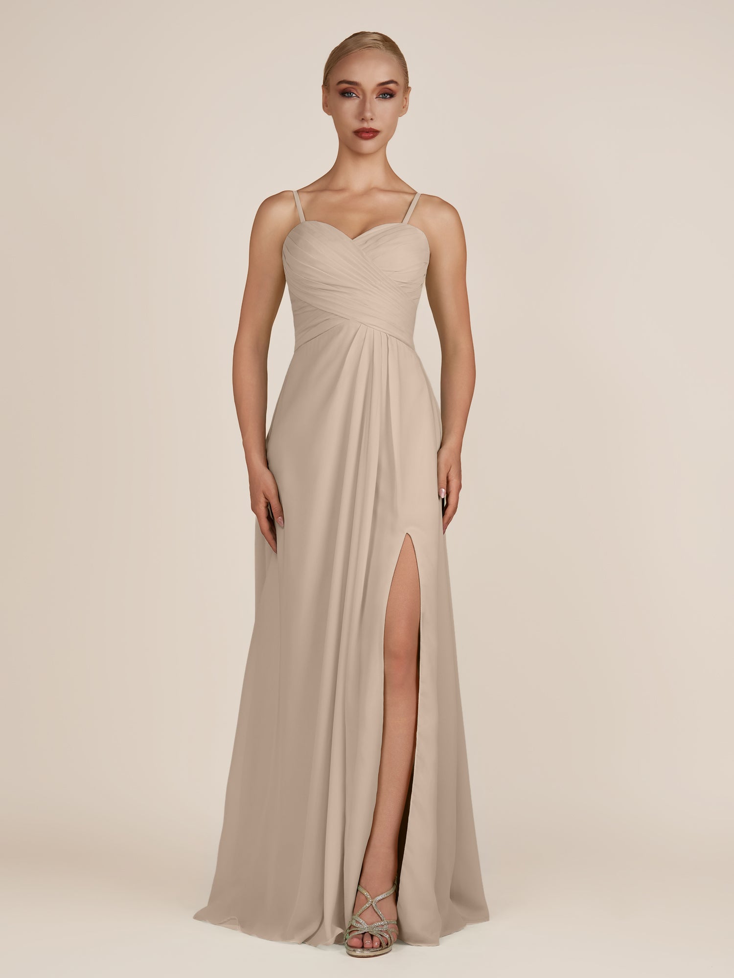 Ysolina | A Line Sweetheart Chiffon Pleated Long Bridesmaid Dress with Slit